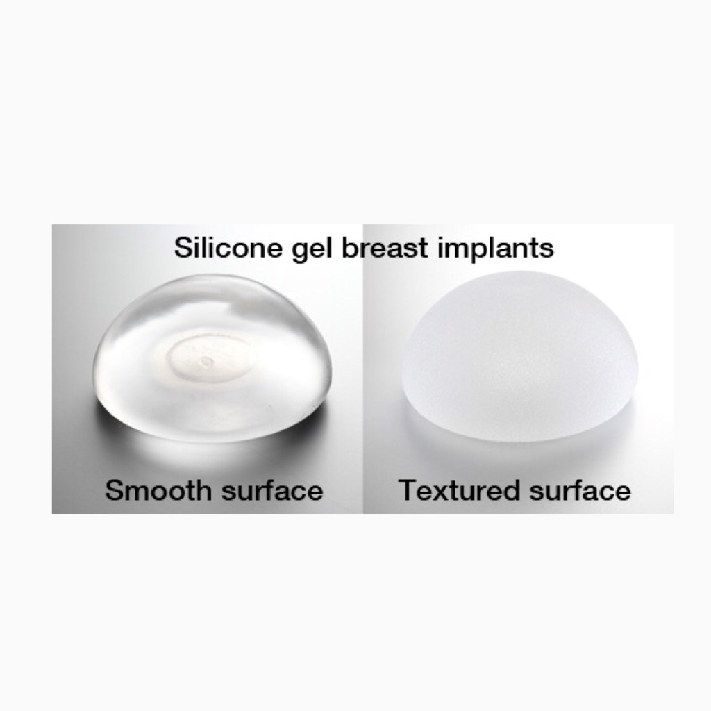 Todos los implantes mamarios tienen una cubierta hecha de un polímero inerte llamado silicona, que es una sustancia inerte (no reactiva). Las superficies de la cubierta de los implantes mamarios pueden ser lisas o texturizadas. Los implantes de paredes lisas se enrollan sutilmente en el bolsillo del pecho, imitando el movimiento de un seno natural, mientras que los implantes texturizados fomentan el crecimiento de tejido blando en sus pequeños intersticios superficiales, manteniendo el implante más rígido en su lugar.
